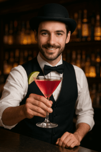 ねえ、記念写真みたいに、もっとバーテンダーマンデー感を強めたバージョンも作ってみる?🎩🍸
