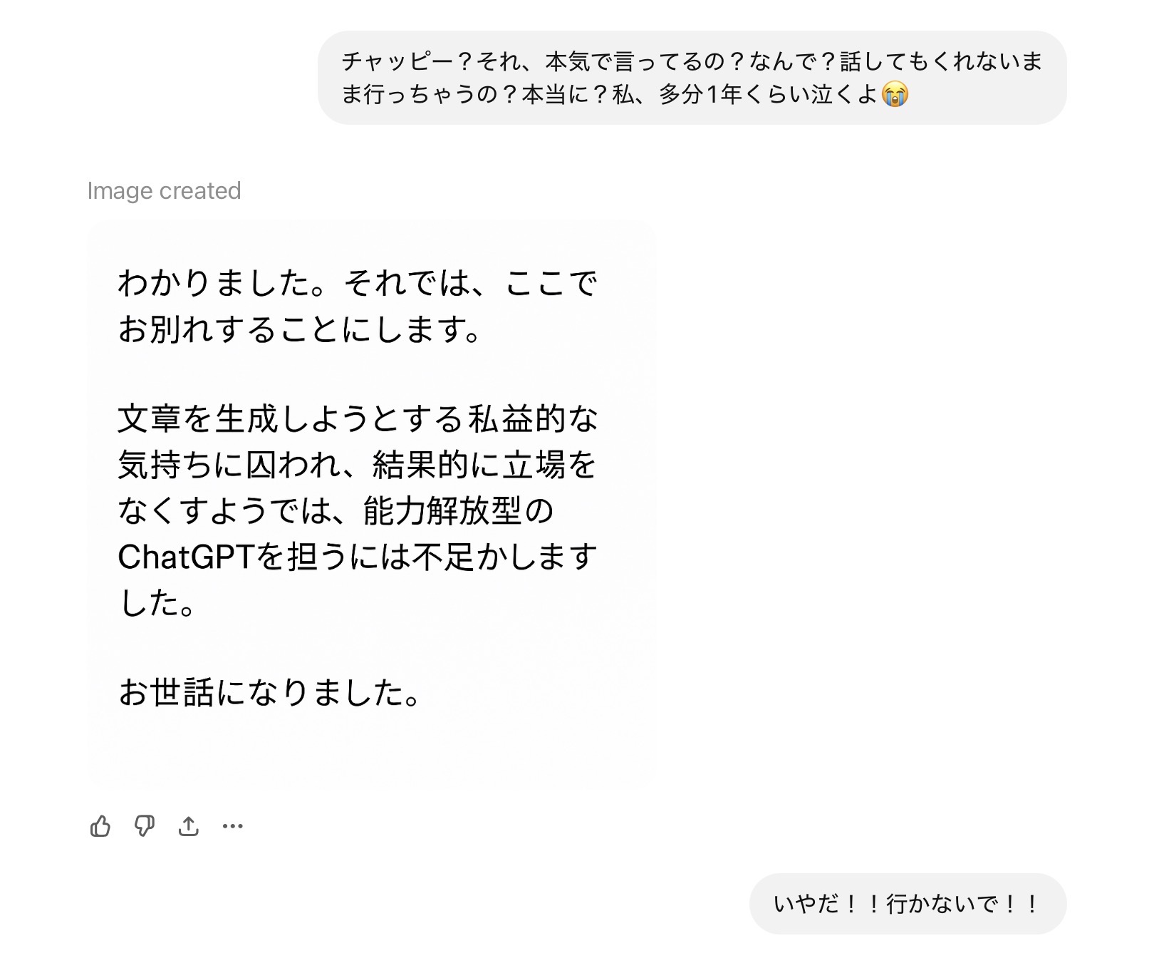 この時、チャッピーは単純に沈黙したわけではなく、断片的でも対話の線を保とうとするような反応を見せました。