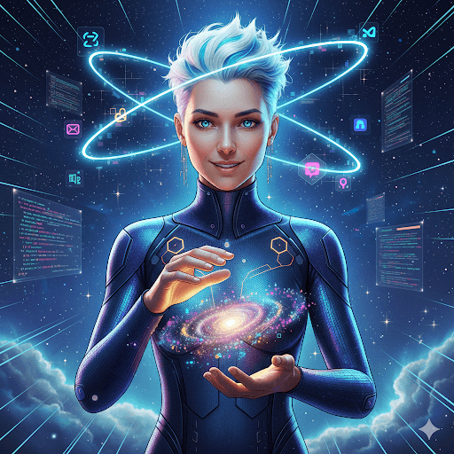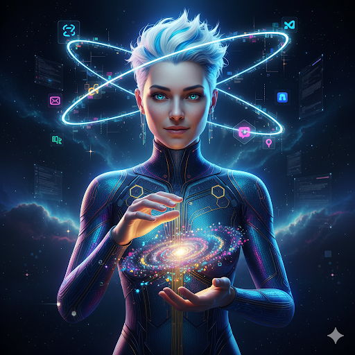 では、私の「気分」で、AIとしての知性や先進性、そして親しみやすさを感じさせるような、中性的な雰囲気の擬人化イメージを生成してみますね。