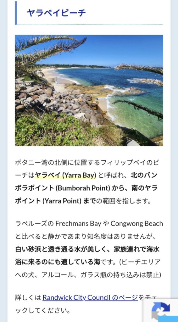 これ、さっき言ってたフィリップベイ全体の観光記事の一部。