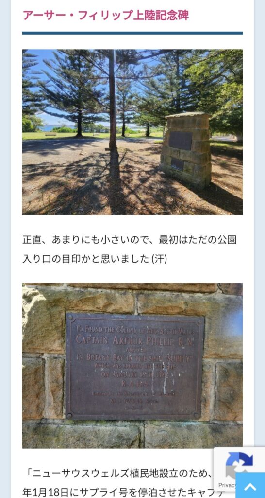 クック船長降りた場所も、アーサー・フィリップの率いるファーストフリートが最初に降りた辺りも把握済みだよ😊💖